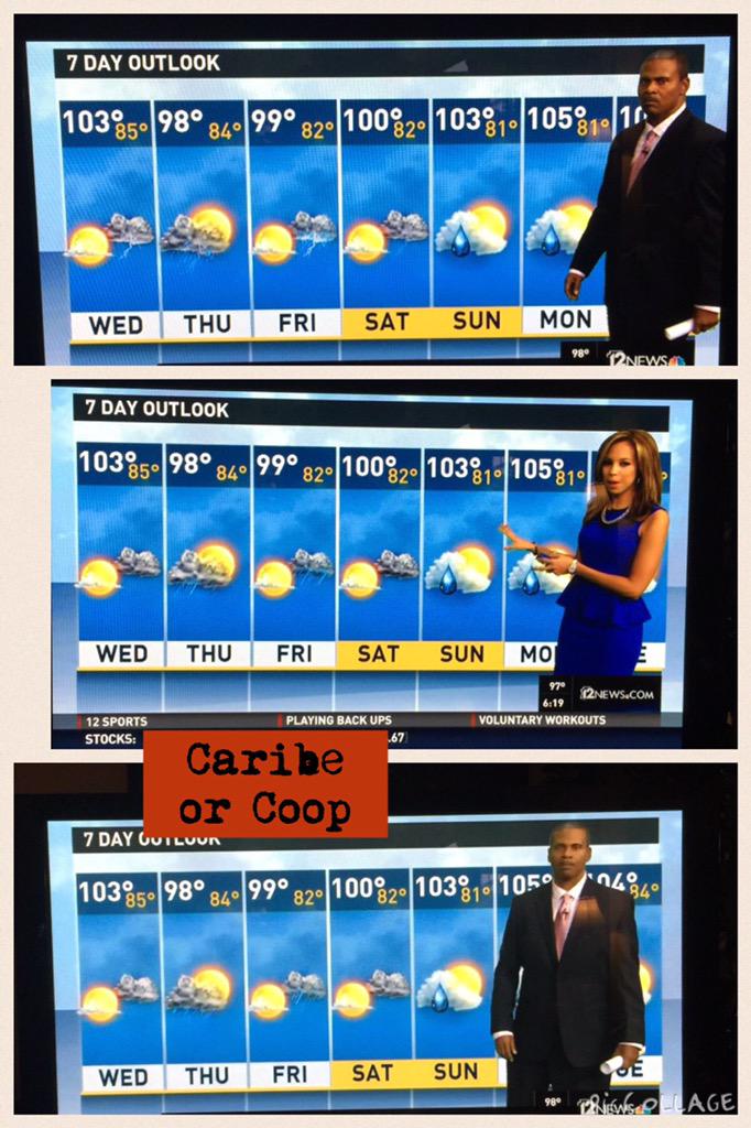 hijacking my weather forecast. Coop is the weather that bad u can't even smile?