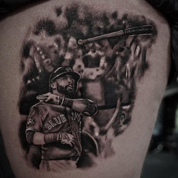 One fan REALLY wanted to remember Jose Bautista's bat flip. (via scootscootmason/Instagram)