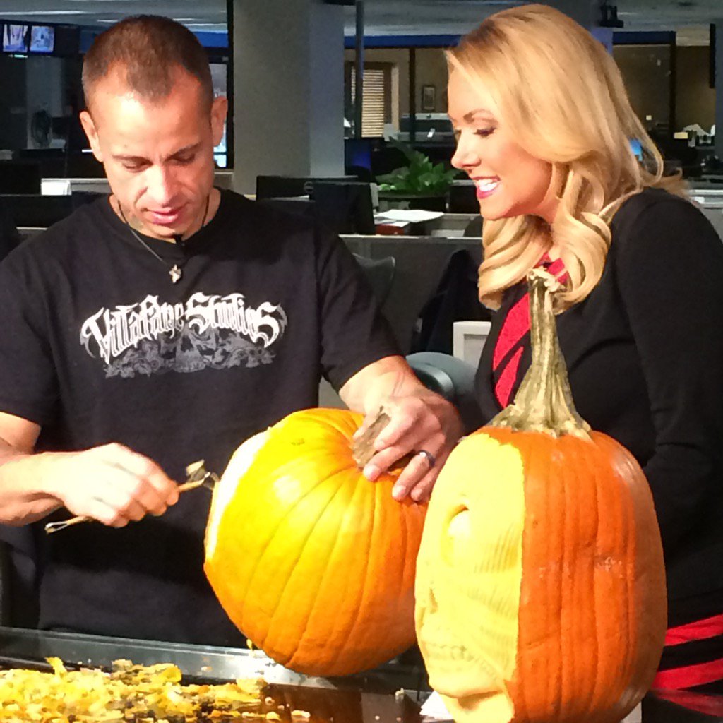 Kim Pravlis Prince tweeted: With world famous pumpkin carver @Villafanestudio, @azfamily and @cerretanews. Perfect way to celebrate Halloween.