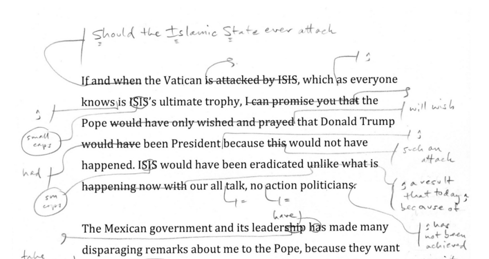 Our copy editor has a few revisions for Donald Trump's latest statement: