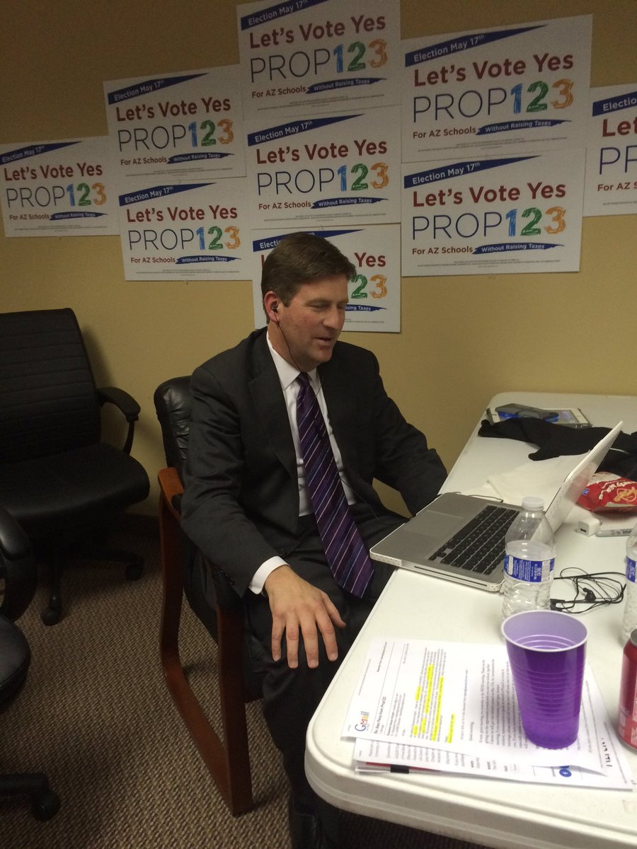 Yes Prop 123 tweeted: .@MayorStanton is getting out the vote & making phone calls at #Prop123 headquarters. Remember to vote YES May 17.