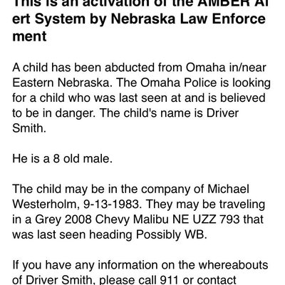 AMBER ALERT: Omaha police looking for 8-year-old Driver Smith. Say he might be traveling with a 33-year-old man in Chevy Malibu UZZ 793